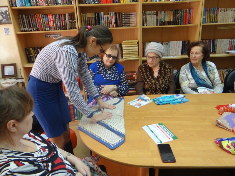 Члены клуба «Прикосновение» организовали выставку даров осени, с интересом обсудили вопросы активной жизни на пенсии и прошли мастер-класс по фуросики (японской техники заворачивания предметов в кусок ткани) от Ирины Шукуровой. Участие в мероприятии приняла председатель Совета ТОС №6 Оксана Гусева.