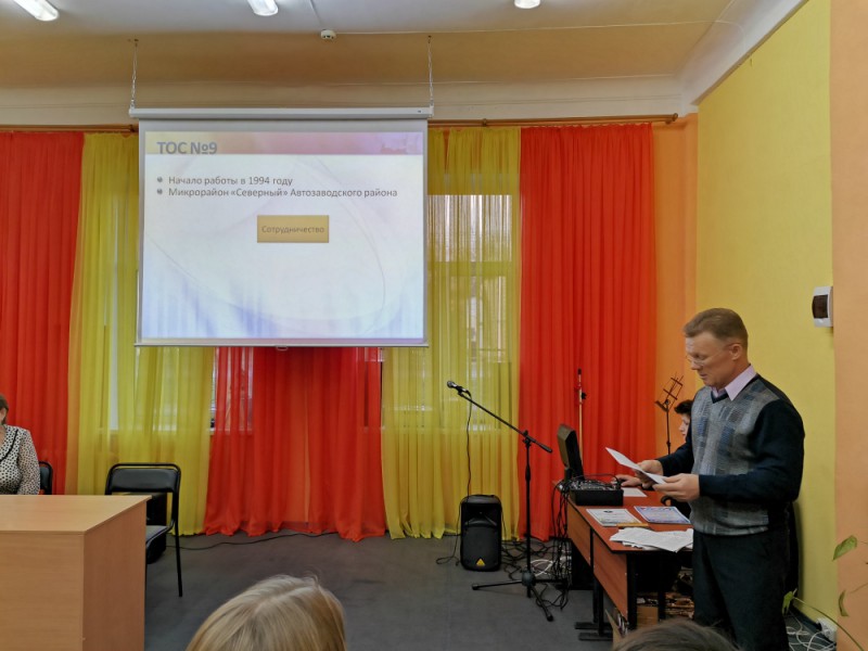 14 ноября в МКОУ «Специальная школа №27 открытого типа» состоялась отчетная конференция о работе Совета общественного самоуправления ТОС №9 за год под председательством С.Е. Круглова. В работе конференции приняли участие 52 делегата, представители администрации района, городской Думы города Нижнего Новгорода, помощник депутата К.Р. Ибрагимова, представители правоохранительных органов. С отчетом о работе ТОС №9 выступил председатель Совета С.Е. Круглов. На конференции были вручены благодарственные письма от главы администрации Автозаводского района А.В.Нагина и подарки от депутата Городской Думы К.Р.Ибрагимова. В завершение перед делегатами выступили творческие коллективы детского клуба «Виктория».