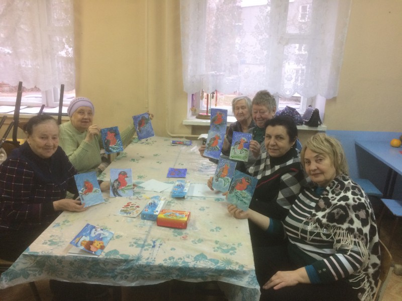 Рисование - прекрасное хобби, как для взрослых, так и для детей. На занятии наши участники нарисовали по данной технике снегирей на ветке. У каждого получился свой, особенный рисунок. На белых листах ожили яркие, красивые птички, а жители получили удовольствие от процесса рисования.