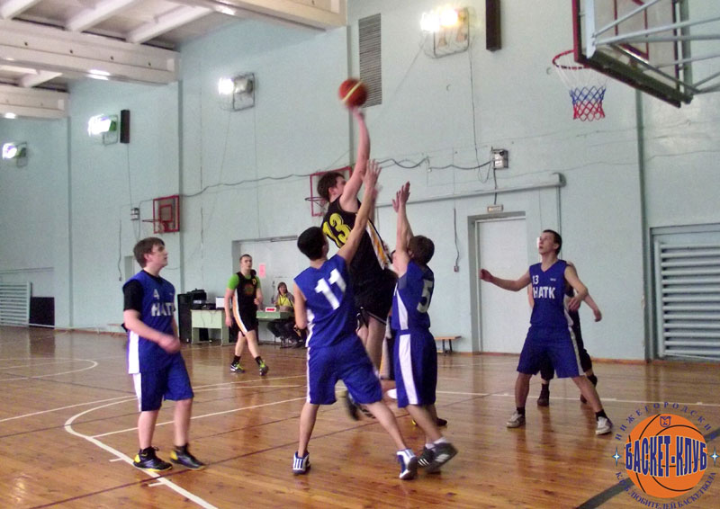 В спортивном зале Нижегородского авиационного технического колледжа на баскетбольную площадку вышли сборная авиационного колледжа «НАТК», команда «93» и команда «Баскет-клуб».