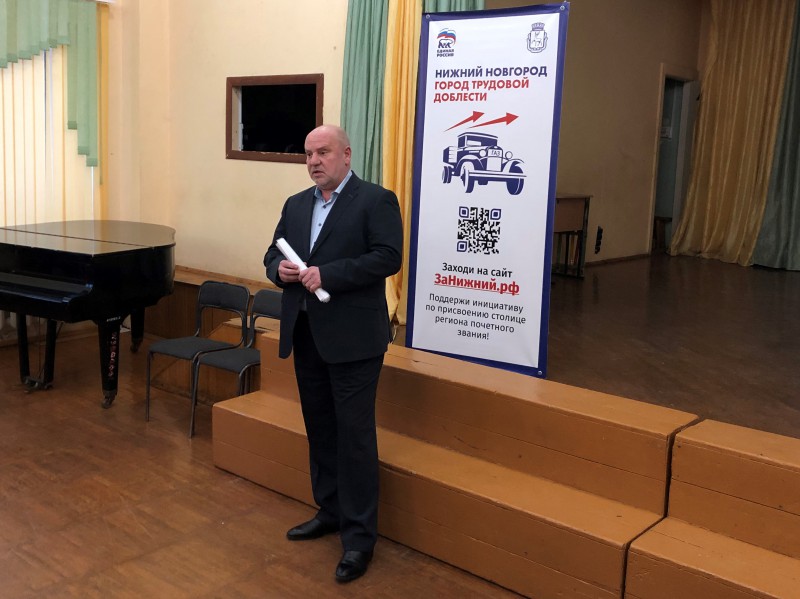 Депутат городской Думы Нижнего Новгорода Андрей Дранишников провел встречу с родительской общественностью в школе №182 Ленинского района. Встреча была посвящена сбору подписей за присвоение Нижнему Новгороду почетного звания «Город трудовой доблести».