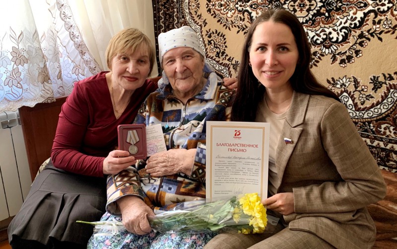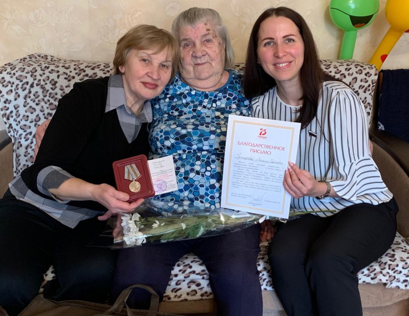 Депутат городской Думы Нижнего Новгорода Татьяна Скоробогатова вручила ветеранам и труженикам тыла юбилейные медали «75 лет Победы в Великой Отечественной войне», а также удостоверения и подарки.