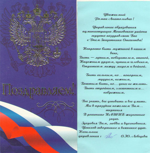 Управление образования администрации Московского района сердечно поздравляет Вас с Днем защитника Отечества!