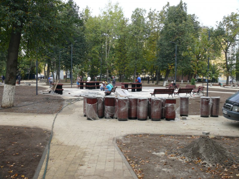 - установка МАФ (урны, скамьи и лавки, дог-диспенсер, парковые качели);