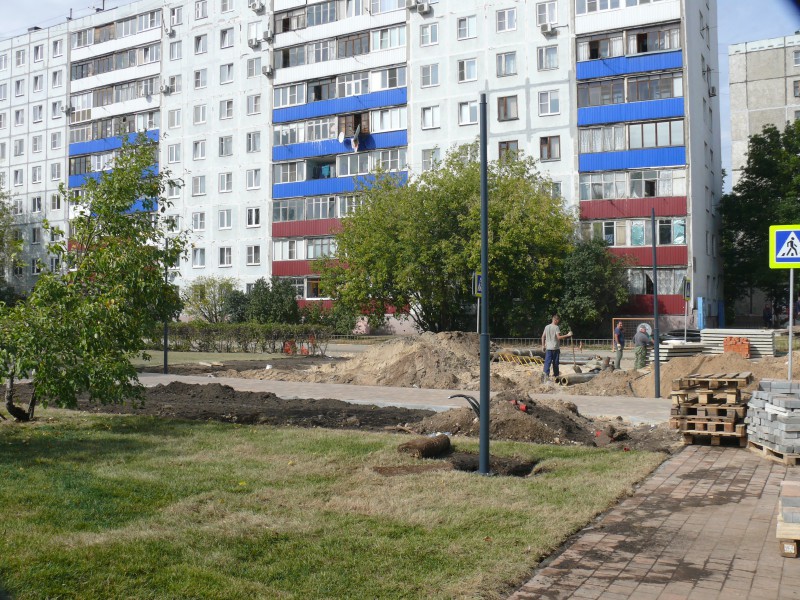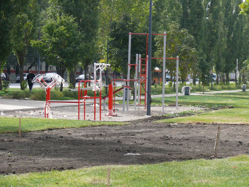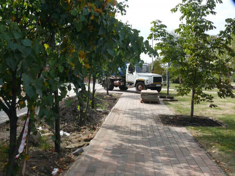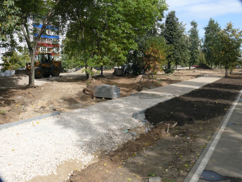- демонтажные работы (металлических урн, детской площадки, покрытия из брусчатки, металлического ограждения);