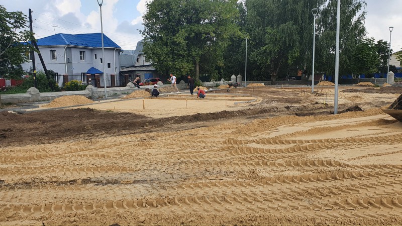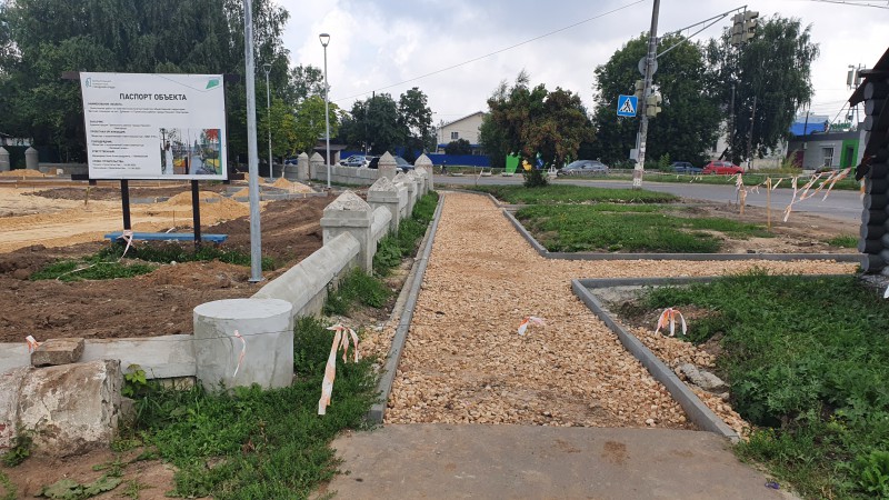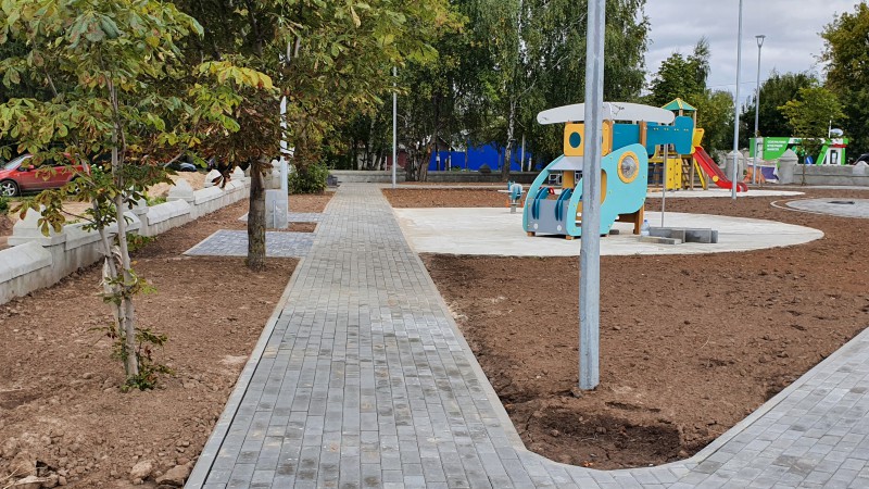 - устройство покрытий (брусчатка, газон, резиновое покрытие детских площадок, тактильная плитка, тропинка из спила дерева);