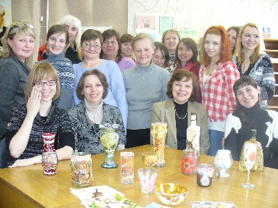 22 марта состоялся первый мастер-класс по художественному оформлению стеклянной утвари в технике «Декупаж». Занятие проводили: руководительница студии декоративного творчества при ТОС № 7 Шагова Ольга Михайловна и ее ученицы Калинина Ксения, Воробьева Екатерина, сестры Сальниковы Маша и Настя. Они научили участников мастер-класса, каким образом из обыкновенной бутылки, банки, стакана можно сделать настоящее произведение искусств. Теперь каждый из них сможет сам работать в технике «декупаж» и поделиться с другими полученными навыками.