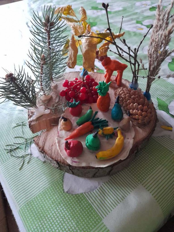 Участники активно выкладывали фото своих поделок в группу. Победителя выбирали путем голосования за наиболее понравившиеся работы, им стал Саша Никонов, 9 лет. Он предоставил на конкурс поделку, которую смастерил самостоятельно использовав пластилин, веточки, шишки, листья, сухую траву и ягоды.