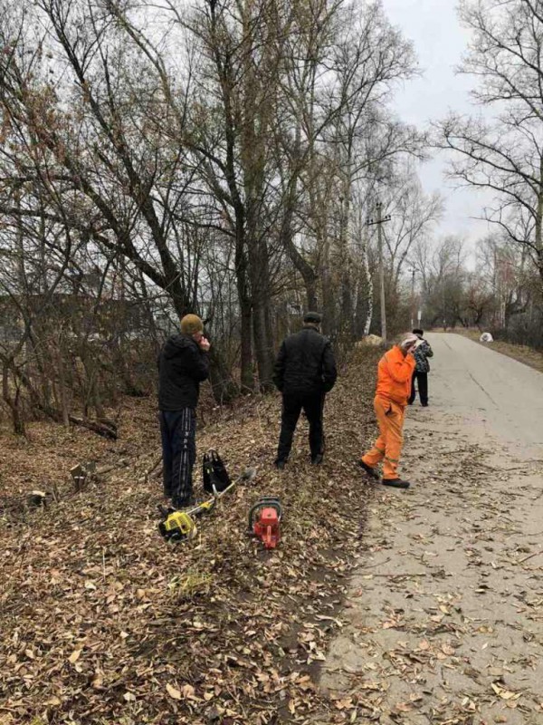 Мужчины прочистили канавы у дороги, вырубив заросли кустарника. Женщины собрали мусор, сухую листву и ветки.