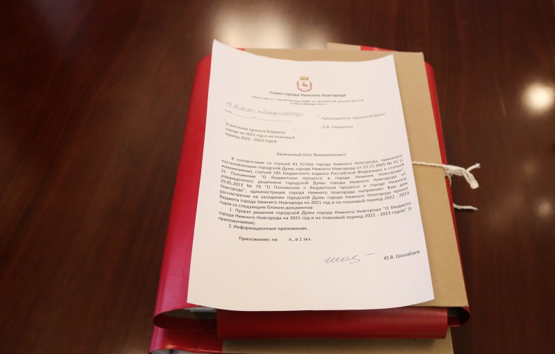 Проект бюджета Нижнего Новгорода на 2021 год и на плановый период 2022-2023 годов внесен администрацией города в городскую Думу 13 ноября 2020 года. Проект главного финансового документа был передан председателю городской Думы Олегу Лавричеву директором департамента финансов Юрием Мочалкиным.