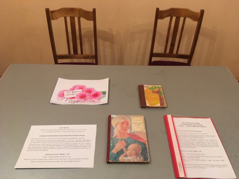 В помещении Совета общественного самоуправления ТОС №5 (ул. Комсомольская, д.46) в День матери прошли поэтические чтения «Мама — самый дорогой человек». Участниками стали Лышникова Наталья Алексеевна, Присада Любовь Ивановна и Кряжева Валентина Николаевна. Прочитаны стихи Сергея Островова «Мать», Сергея Есенина «Письмо матери», Андрея Дементьева «Я знаю, что все женщины прекрасны», Роберта Рождественского «Здравствуй, мама», Александра Твардовского «Не стареет твоя красота…», стихи, ставшие песнями Юрия Энтина «Мама» и Виктора Гина «Поговори со мною, мама». Каждому человеку дорога его мать. Выражая свою любовь к матерям, писатели и поэты, выдающиеся люди находят необыкновенно теплые слова. «Прочитанные стихи и высказывания о женщинах и женщинах-матерях наполнены благодарностью матерям за то, что дали жизнь, за то, что любили и заботились. Эти стихи подарили минуты счастья и радости милым и ласковым мамам, любящим и любимым бабушкам, и всем женщинам, которые носят великое имя — Мама!», — рассказала специалист по связям с общественностью Валентина Кряжева.