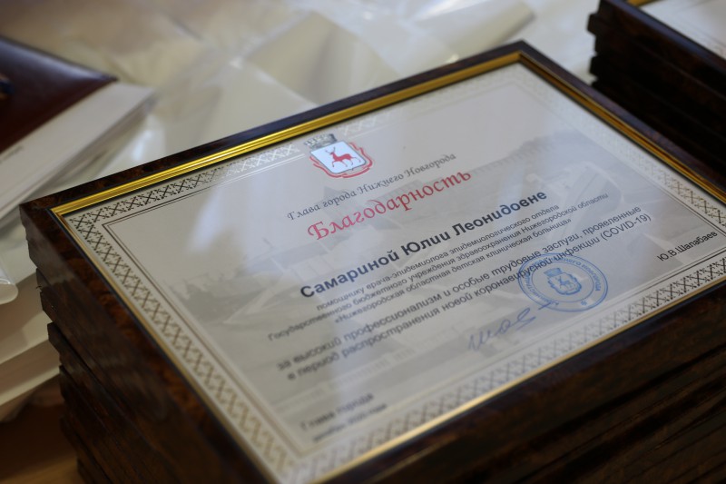 Почетные грамоты городской Думы и Благодарственные письма главы города были вручены сотрудникам городской больницы № 33 Ленинского района, городской клинической больницы № 3, Клинического диагностического центра, Нижегородского областного центра по профилактике и борьбе со СПИД и инфекционными заболеваниями, городской клинической больницы № 12 Сормовского района, Инфекционной клинической больницы № 23, Нижегородской областной детской клинической больницы, городской клинической больницы № 30, городской больницы № 28 Московского района, городской клинической больницы № 5 Нижегородского района, городской клинической больницы № 38 Нижегородского района, Нижегородской областной клинической больницы им. Н.А. Семашко, Инфекционной клинической больницы № 2, городской клинической больницы № 13 Автозаводского района.