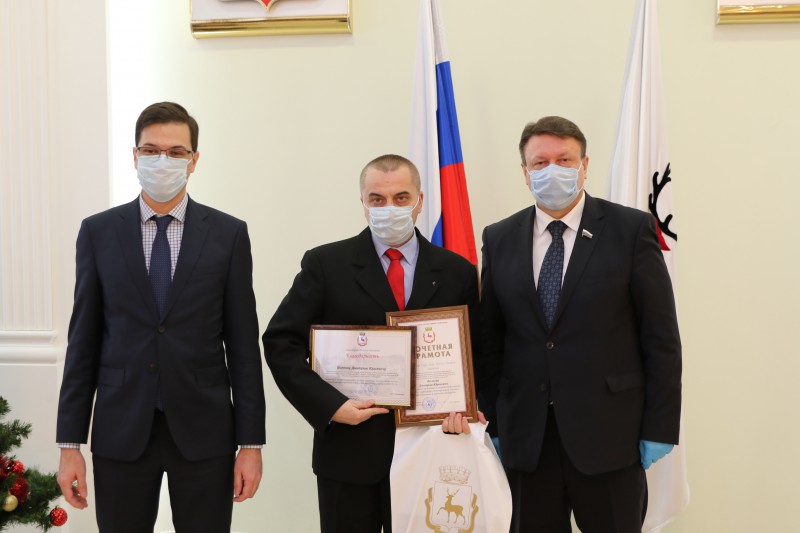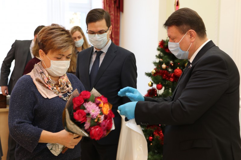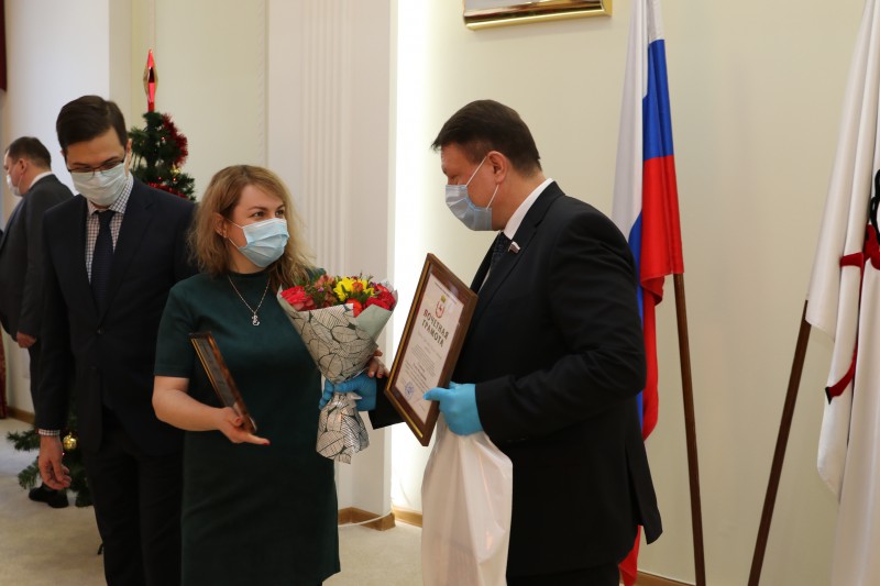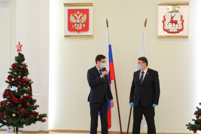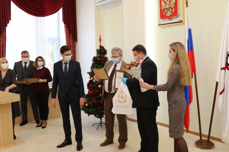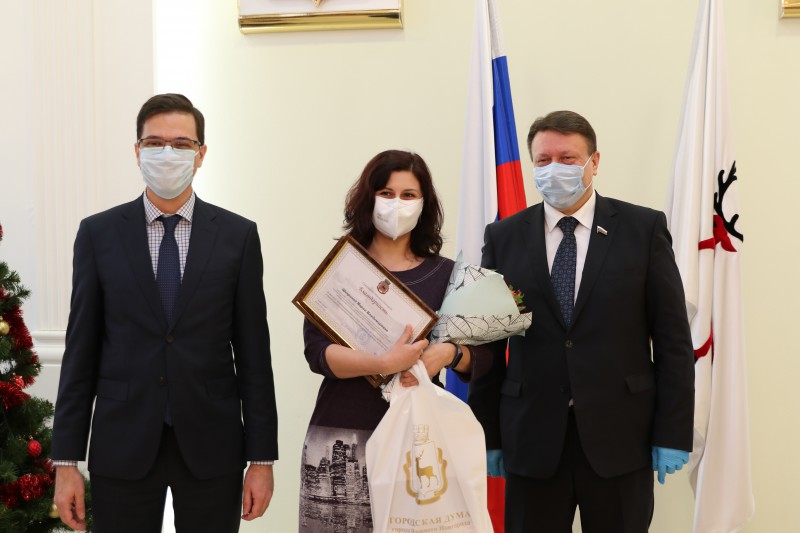 28 декабря 2020 года в городской Думе прошла торжественная церемония награждения медицинских работников Нижнего Новгорода. Глава города Юрий Шалабаев и Председатель городской Думы Олег Лавричев вручили Почетные грамоты и Благодарственные письма 32 сотрудникам медицинских организаций, работающим в «красных» зонах. Они поблагодарили врачей и медперсонал за проявленное мужество и самоотверженность в борьбе с коронавирусной инфекцией.