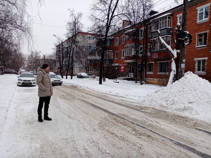 Депутат отметил, что у некоторых домов по улице Ногина не убран собранный снег, около школы №117 не расчищена дорога.