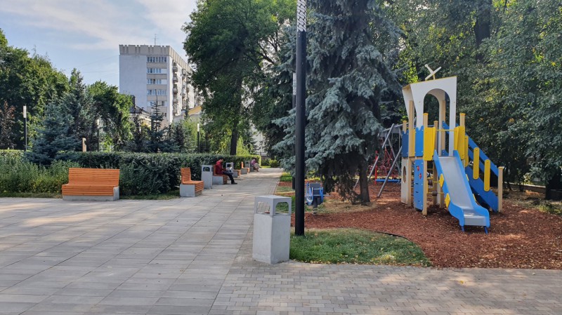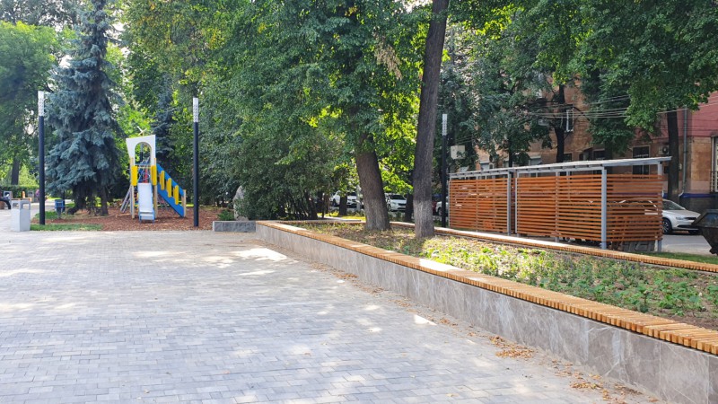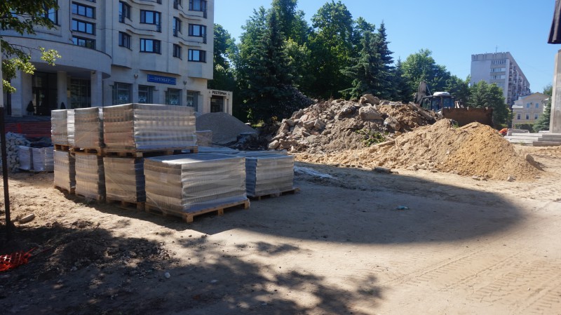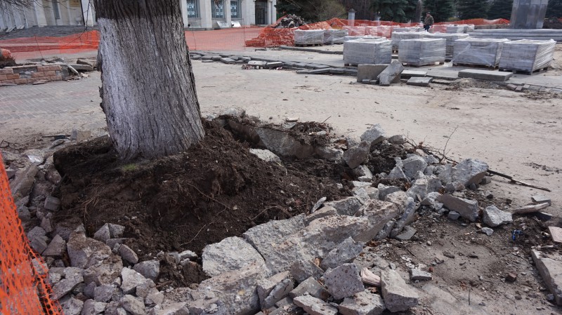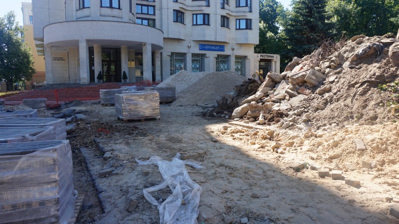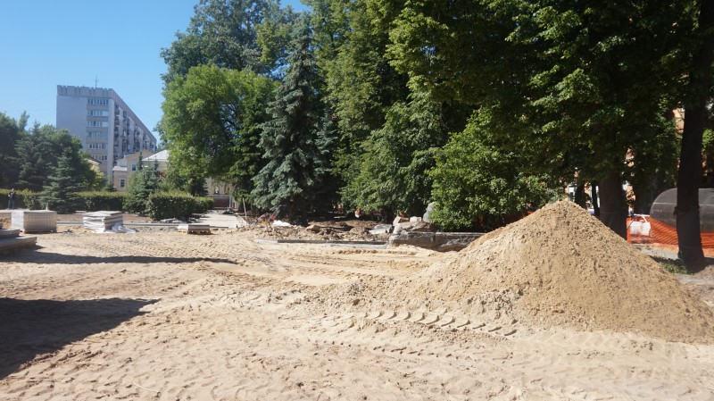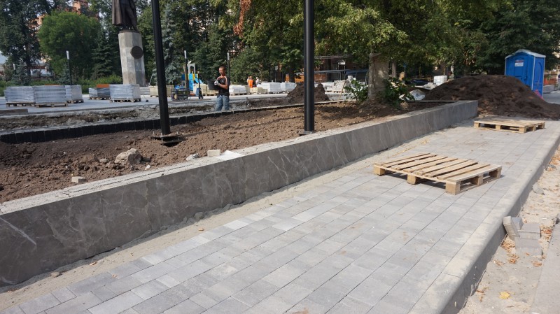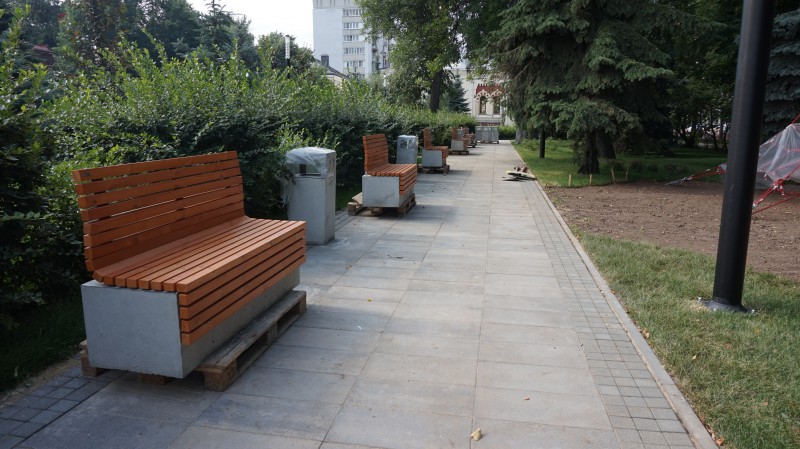 - демонтажные работы (покрытий, урн, скамеек, ограждения);