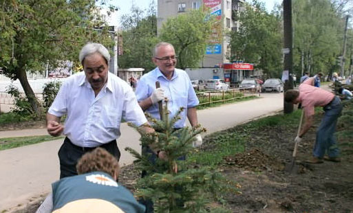В ходе акции на ул. Надежды Сусловой были высажены молодые голубые елочки. Вместе с депутатом Марком Фельдманом 15 голубых елочек посадили жители района, ветераны, волонтёры, представители администрации Советского района.