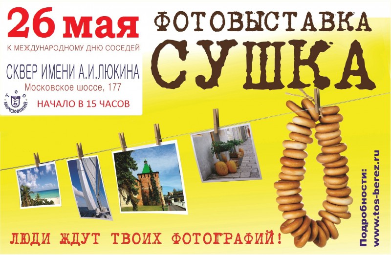 26 мая Совет общественного самоуправления ТОС микрорайона «Березовский», при поддержке местного отделения партии «Единая Россия» в Московском районе, проводит VI-ю выставку среди фотолюбителей «Сушка», посвященную Международному дню соседей. Целью выставки является популяризация культурного наследия Нижегородского края и выявление наиболее интересных авторских фоторабот. Задачи выставки: представление видения окружающего мира через фотообъектив; воспитание у горожан чувства уважения, патриотизма и любви к своему краю и своим соседям; развитие творческого потенциала авторов. По своей сути «Сушка» — это грандиозная, под открытым небом, выставка-конкурс фотографий, в которой принять участие могут все желающие. Главное объединяющее всех участников — это любовь к фотографии. Местом проведения «Фотосушки» является сквер Александра Люкина, где натягиваются обычные бельевые веревки и любой желающий при помощи прищепок может развесить свои фотографии. На обратной стороне автор может написать название работы, свои пожелания, координаты. Все выставленные фотографии оцениваются организаторами и посетителями «Фотосушки» специальными стикерами. Подведение итогов и выявление лучших работ будет проводиться на основании голосования посетителей, а так же гостей выставки в следующих четырех номинациях: «Лучшая фотография «Сушки-2021», «Мои соседи», «Летопись Московского района». По результатам итогов будет вручен специальный приз. Победители в каждой номинации награждаются дипломами и призами. В отдельной экспозиции будут представлены фотографии памятных мест и узнаваемых территорий Московского района, снятые более полувека назад. Самая замечательная из них будет отмечена специальным призом фестиваля конкурсов «Малая Родина: моя улица, мой дом». Основное требование к участникам — они должны быть авторами фотографий, представляемых на выставке. Каждый участник может представить не более 5 фотографий размером 20×30. Фотоработы участников конкурса ждем с 20 мая ежедневно с 12:00 до 15:00 часов в помещении Совета ТОС микрорайона «Березовский» по адресу: Московское шоссе, 155. Подробности по телефону: 275−48−86 и на сайте: tos-berez.ru. Участники могут направить свои фотографии разрешением не менее 2400×1600 пкс на эл. почту: cal_tos-berez@rambler.ru до 24 мая, лучшие из них будут размещены на выставке «Сушка-2021». Регистрация участников состоится 26 мая с 14.30 часов. Время работы выставки с 15.00 до 19.00 часов. Награждение победителей всех номинаций состоится в 18.00 на «Соседских посиделках» в Литературной беседке сквера. Мы надеемся, что творческая инициатива Совета ТОС «Березовский» найдет поддержку среди горожан и в очередной раз сделает фотовыставку в сквере микрорайона «Березовский» ярким праздником нижегородских соседей по двору, микрорайону, территориальных общественных самоуправлений города Нижнего Новгорода. За шесть лет проведения участниками и победителями традиционной выставки-конкурса «Сушка» становились жители и представители активов ТОС всех районов города.